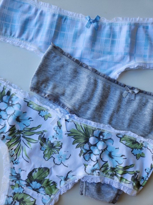 Pack Vintage x3 culotte less de algodón con detalle en puntilla