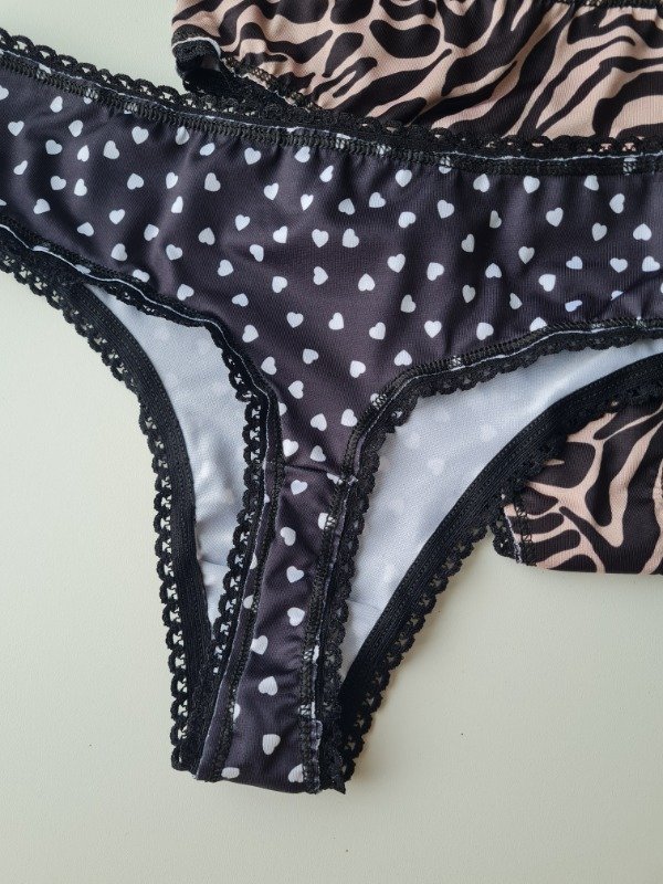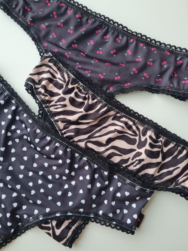 Pack Sayka x3 culotte less de microfibra estampada con detalle en puntilla