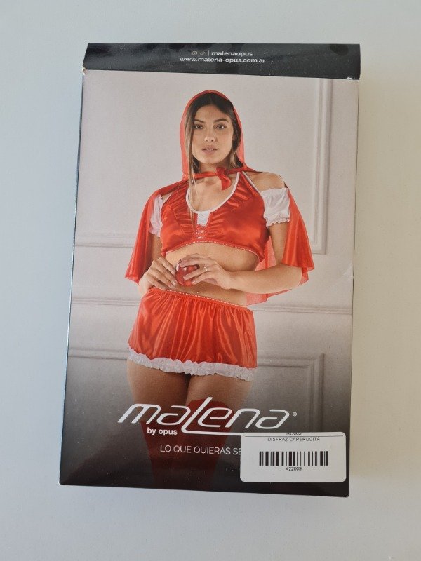 Disfraz Malena de caperucita roja. Incluye top y pollera de microfibra + capa + less para atar. Talle único (85/90/95)