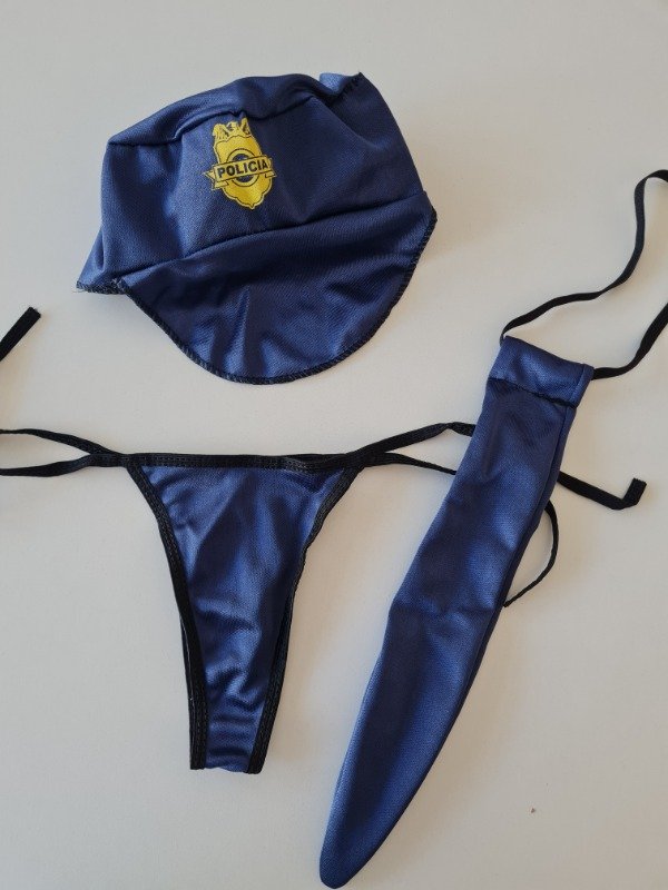 Disfraz Malena de policía. Incluye top y pollera de microfibra para atar + less para atar + gorrito + corbata. Talle único (90/95)