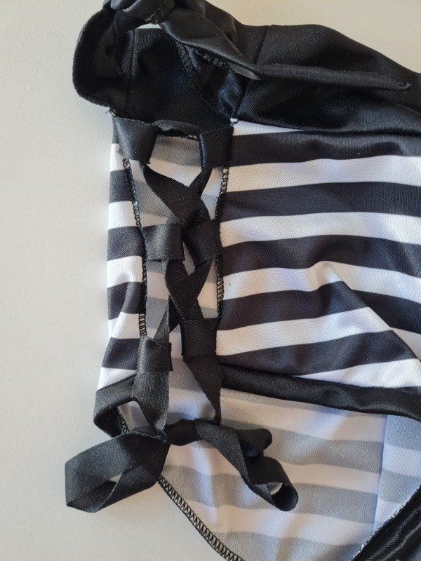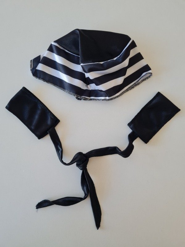 Disfraz Pasionel de presa. Incluye top y short de microfibra para atar + gorrito + esposas de tela. Talle único (90/95)