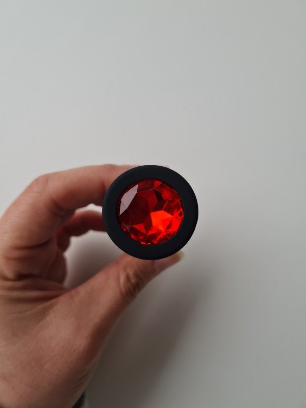 Plug anal de silicona suave con joya. Tamaño small. Largo total: 7 cm