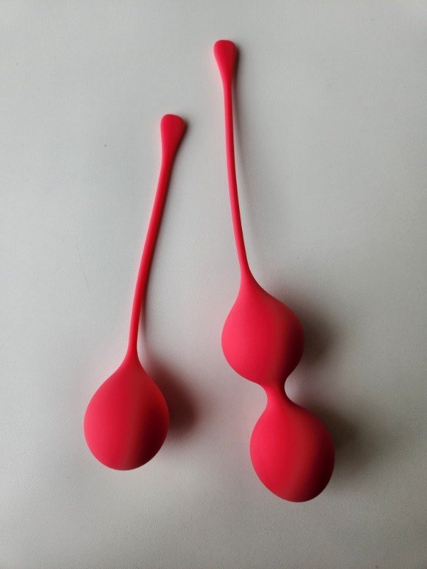 Bolas Kegel de silicona ultrasoft. Resistentes al agua. Ergonómicas. Incluye ambas unidades. Medidas de las bolas: 3,2 cm. Largo total de la bola simple: 14 cm. Largo total de la bola doble: 19 cm. Peso bola simple: 42 gr. Peso bolas dobles: 45 gr